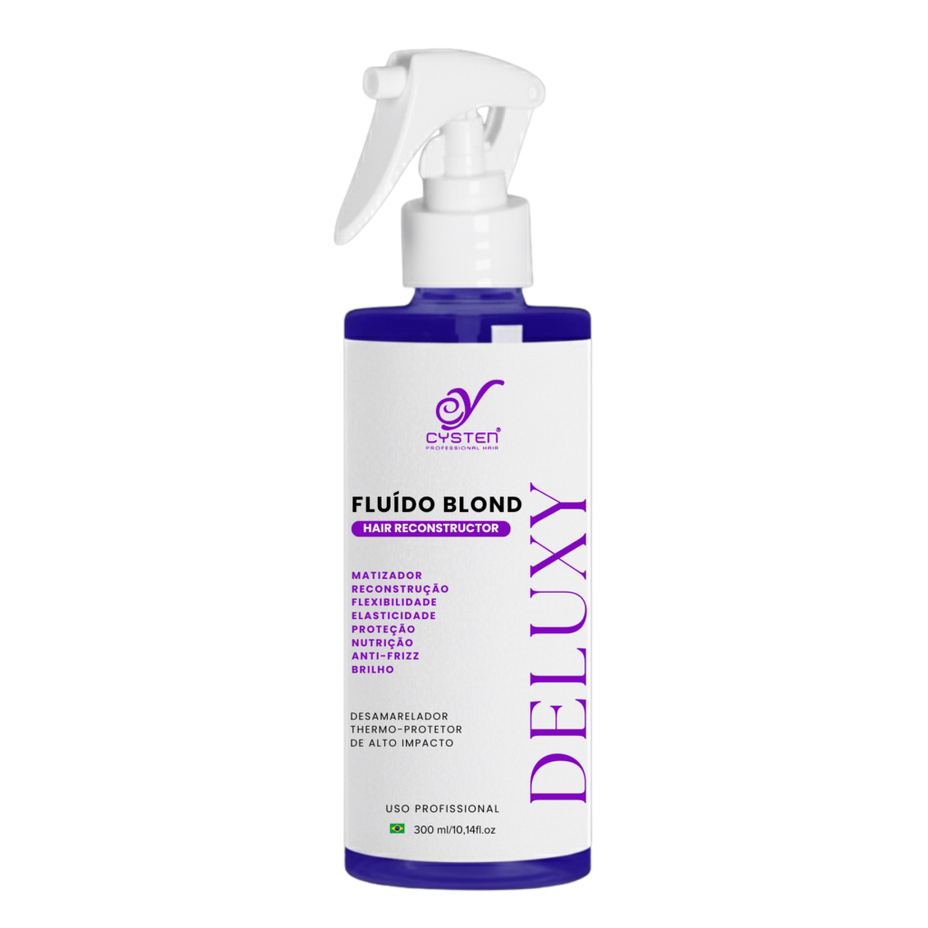 O Deluxy Fluído Blond é um finalizador profissional desenvolvido especialmente para cabelos loiros, descoloridos e grisalhos. Sua fórmula exclusiva com Blend of Violet Pigments atua neutralizando os tons alaranjados indesejados, revelando um loiro mais luminoso, uniforme e platinado, desde a primeira aplicação. Além do efeito matizador, o Fluído Blond proporciona finalização completa, com ação reconstrutora e protetora. Seus ativos envolvem os fios com uma camada nutritiva e leve, garantindo maciez, sedosidade, brilho intenso e controle absoluto do frizz.